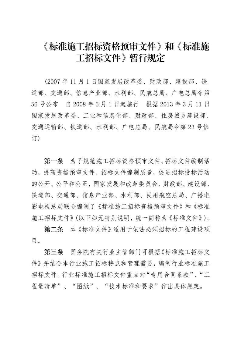 《标准施工招标资格预审文件》和《标准施工招标文件》暂行规定