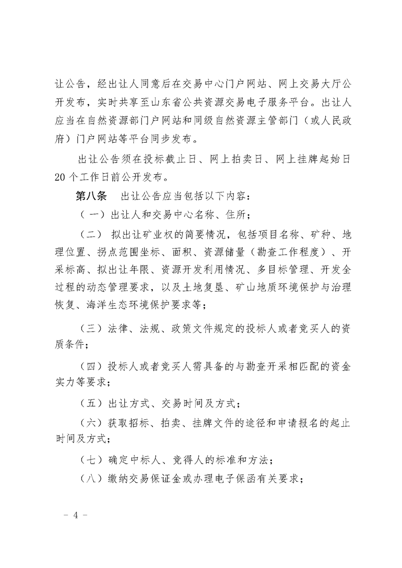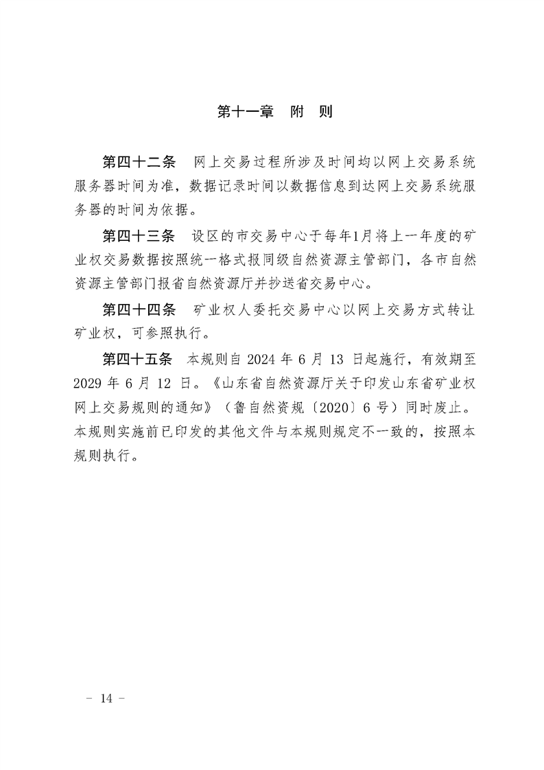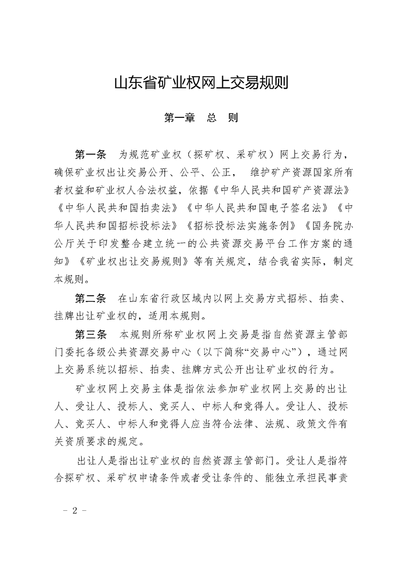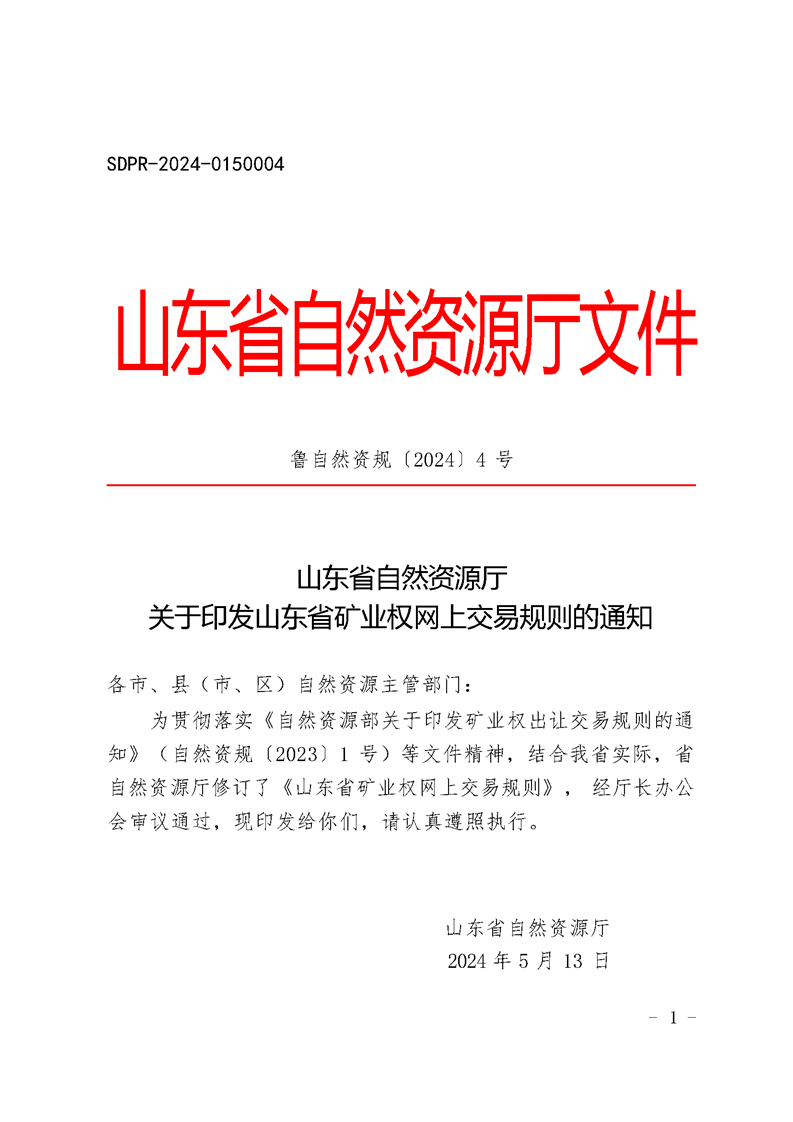 山东省自然资源厅 关于印发山东省矿业权网上交易规则的通知